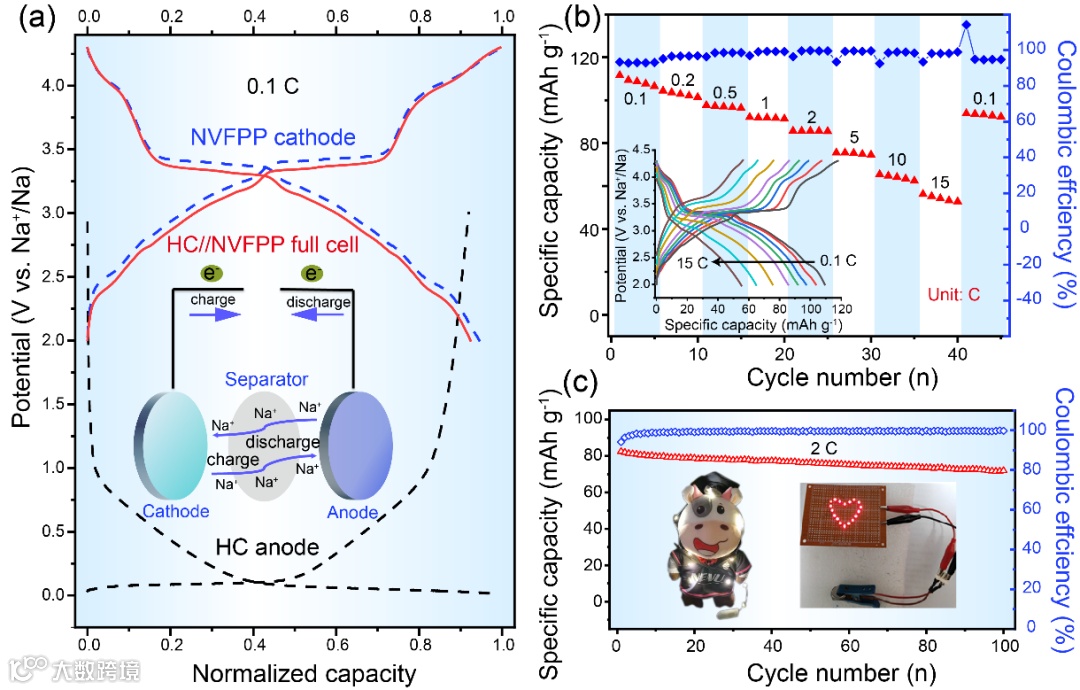 图6. HC//NVFPP/C/G全电池的构筑及其应用