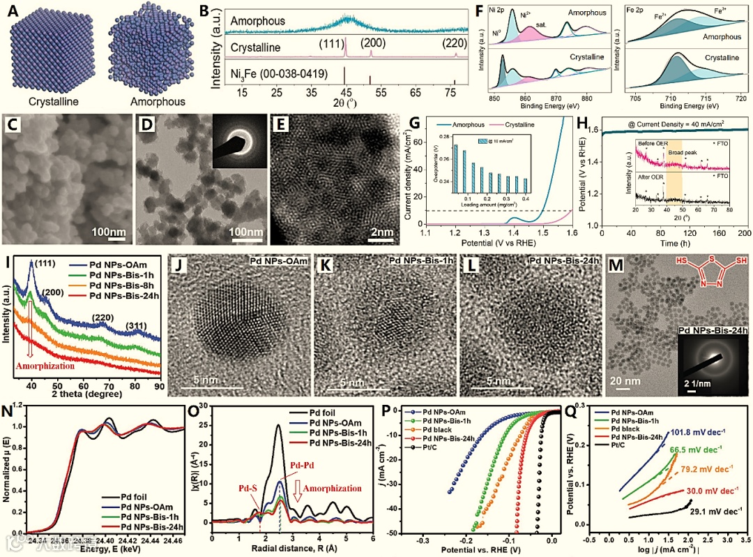 (iii) 超薄非晶催化剂由于其电解-催化剂界面非常大,可以实现快速电化学全重建(快速电化学活化)。