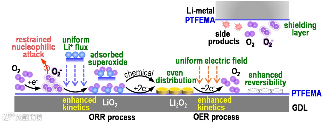 图 1 聚合物添加剂PTFEMA在Li-O2电池中的作用机理示意图