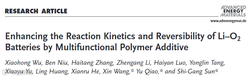 多功能聚合物添加剂增强Li-O2电池反应动力学和可逆性