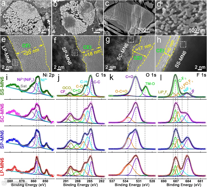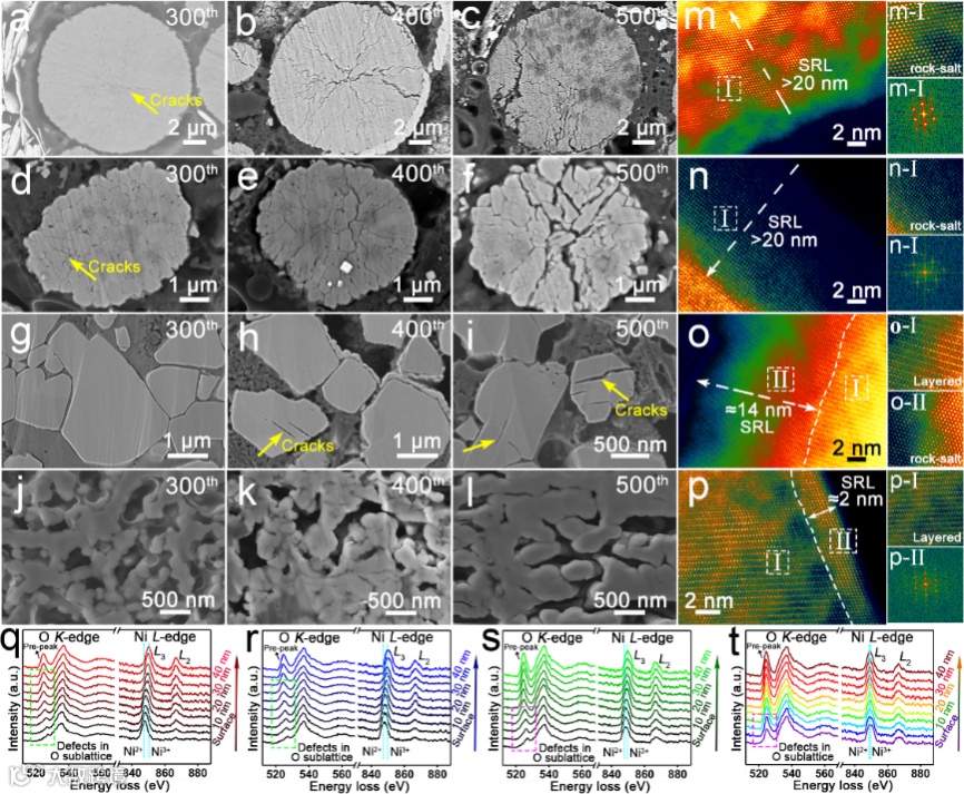 图3. 不同结构设计LiNi0.6Co0.2Mn0.2O2循环后表界面结构表征