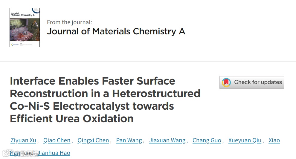 基于此,来自西北工业大学的韩潇副教授与香港理工大学的郝建华教授合作,在国际知名期刊Journal of Materials Chemistry A上发表题为“Interface Enables Faster Surface Reconstruction in a Heterostructured Co-Ni-S Electrocatalyst towards Efficient Urea Oxidation”的文章。