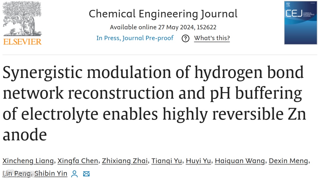 电解液氢键网络重构与pH缓冲效应相结合实现高度可逆的锌负极
