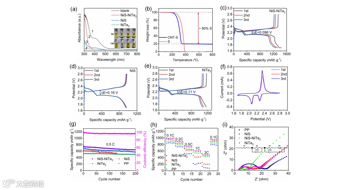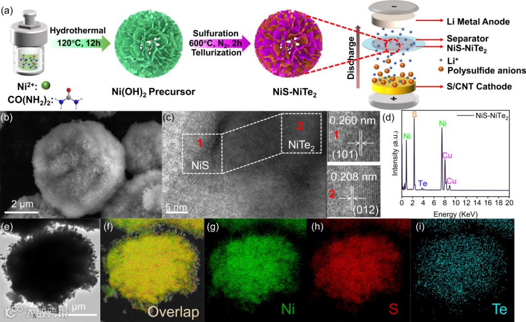 NiS-NiTe2异质结构改性隔膜界面协同作用促进锂硫电池硫氧化还原动力学研究