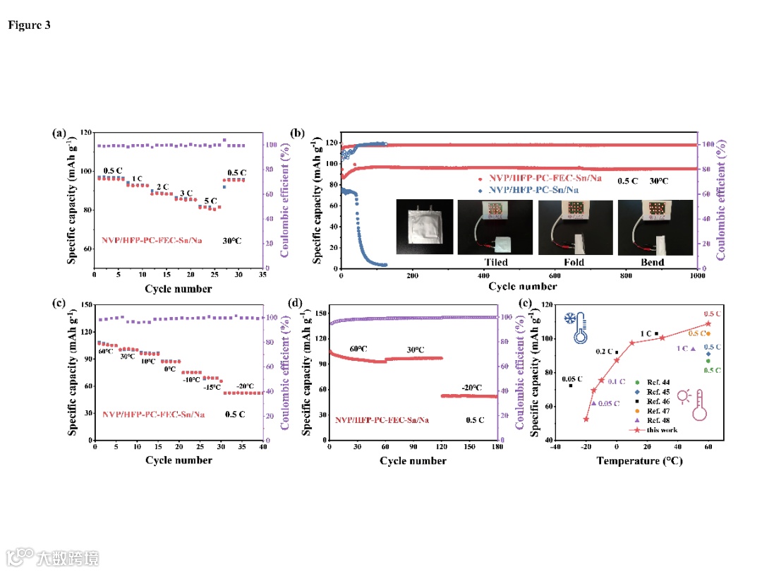 图4. 准固态钠电池在不同环境下的适应性