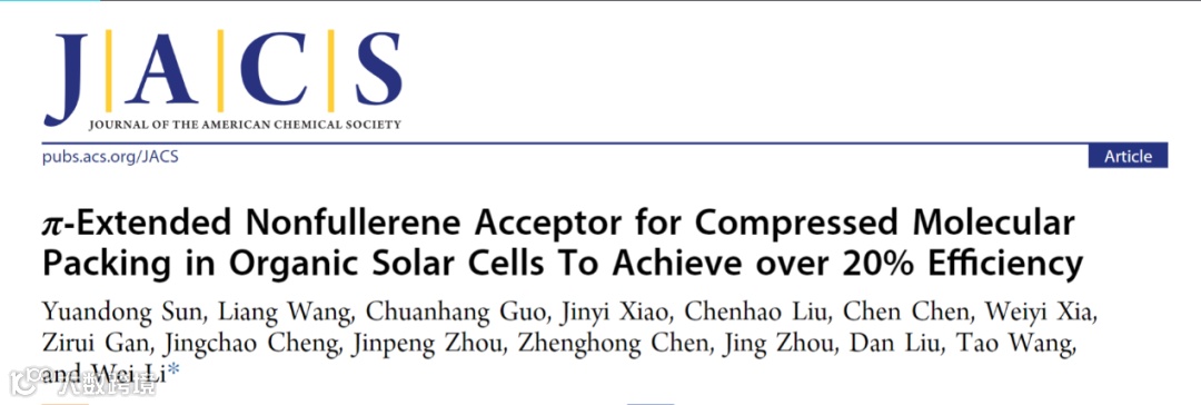 近日,武汉理工大学王涛课题组李伟研究员与博士研究生孙元栋等人就非富勒烯受体分子堆积结构展开研究,在国际知名期刊Journal of the American Chemical Society上发表题为“π-extended non-fullerene acceptor for compressed molecular packing in organic solar cells to achieve over 20% efficiency”的文章。该文章就分子堆积排列结构与能量损失的关系进行了详细的研究与讨论,同时提出了压缩分子堆积结构来实现载流子传输和能量损失同步优化的策略,并在诸多经典有机光伏体系中对该策略的有效性进行了普适性验证,最终在PM6:L8-BO和D18:L8-BO的体系中实现了目前单节OPVs最高的光电转换效率(分别为19.8%和20.2%)。