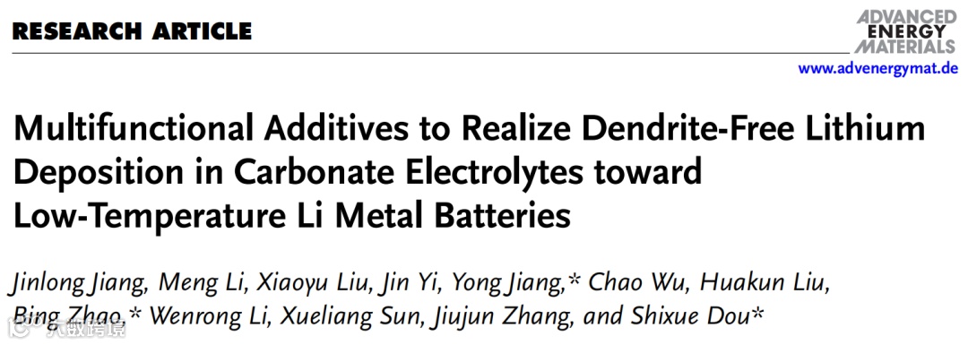 多功能添加剂实现碳酸酯电解液体系低温锂金属电池