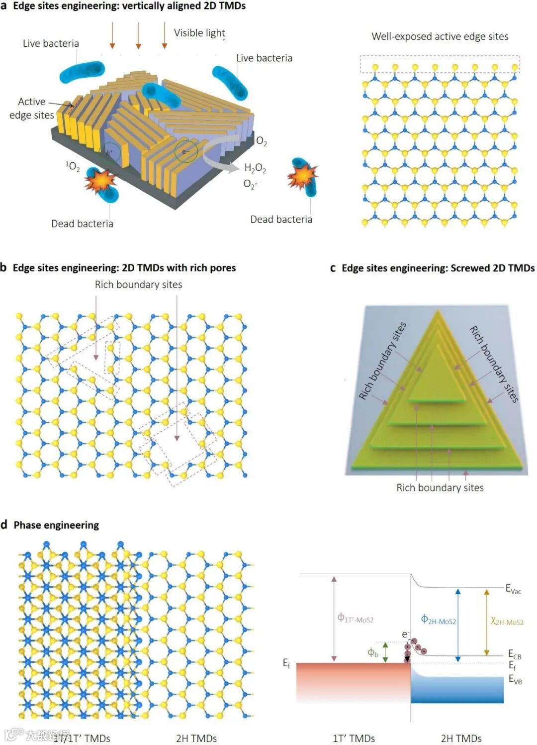 半导体相2D TMD具有催化惰性基面,其催化活性中心通常位于边缘,在那里暴露出丰富的不饱和原子。因此,创建暴露良好的活性边缘位点(称为边缘位点工程)是增强2D TMDs光催化活性的合理方法。