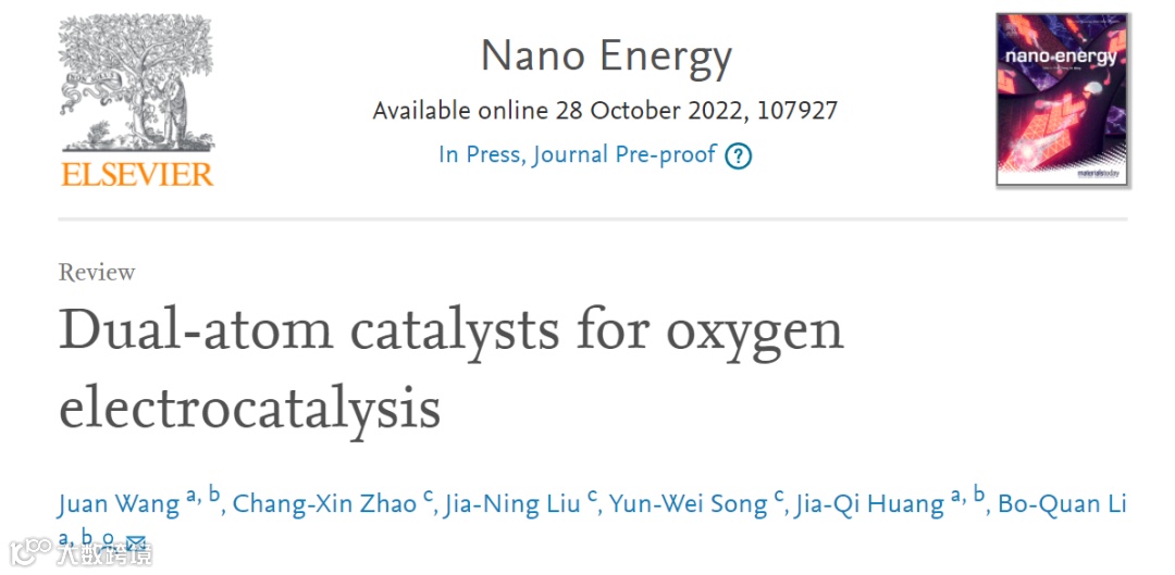 基于此,来自北京理工大学的李博权副研究员团队在国际知名期刊Nano Energy上发表了题为“Dual-atom catalysts for oxygen electrocatalysis”的综述文章,系统讨论了双原子催化剂在ORR和OER电催化领域中的最新进展。