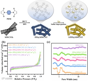图2:PPI@MWCNT的合成及孔结构参数表征。