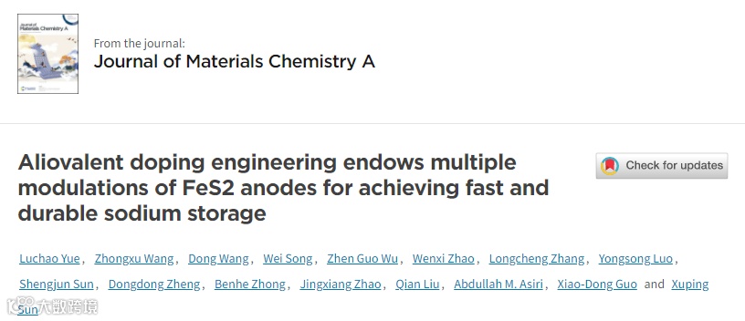 基于此,来自电子科技大学的孙旭平教授团队在国际知名期刊Journal of Materials Chemistry A上发表“Aliovalent doping engineering endows multiple modulations of FeS2 anodes for achieving fast and durable sodium storage”文章。