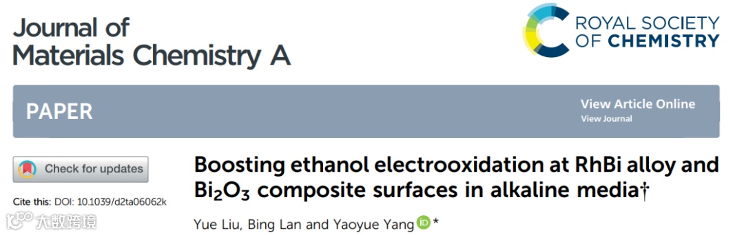 基于此,西南民族大学阳耀月教授课题组在国际知名期刊Journal of Materials Chemistry A上发表题为“Boosting ethanol electrooxidation at RhBi alloy and Bi2O3 composite surfaces in alkaline media”的研究文章。