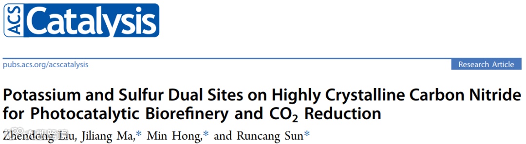 在这里,来自大连工业大学孙润仓教授团队的马纪亮副教授与澳大利亚南昆士兰大学的洪敏副教授合作,在国际知名期刊ACS Catalysis上发表题为“Potassium and Sulfur Dual Sites on Highly Crystalline Carbon Nitride for Photocatalytic Biorefinery and CO2 Reduction”的研究论文。