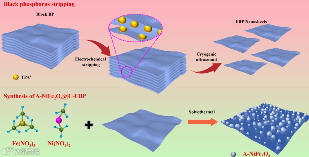 基于此,石河子大学化学化工学院陈龙副教授团队发表了研究性文章,该论文通过电化学剥离和溶剂热法,构建了非晶态铁基尖晶石氧化物(A-MFe2O4 (M= Ni, Co, Zn))均匀固定在剥离黑磷(C-EBP)纳米片上的非晶-晶体界面。