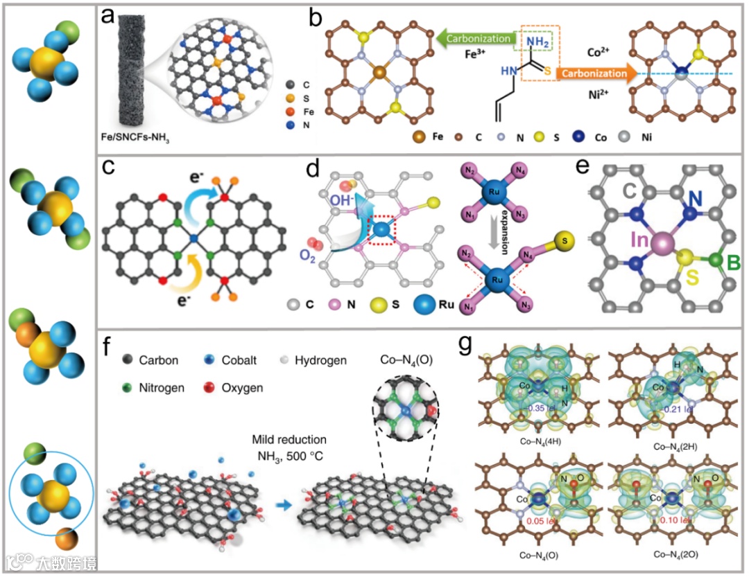 中心活性金属的配位数已被证明与中间吸附有内在的关系,从而与催化活性有内在的关系。为了揭示配位数调控的机理,人们探索了多种策略。其中,基于高温煅烧和还原的控制策略对氮配位数进行了精确调控。