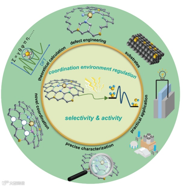 北京理工大学赵娣副教授、张加涛教授及清华大学陈晨教授从碳基原子分散的金属位点的配位环境调控出发,系统阐述了配位结构变化引起的电子结构改变以及对应的选择性和活性调控的最新进展。特别是针对配位壳层的调控策略提出了独特的见解,如材料合成中温度对配位环境的影响、不同壳层配位环境的调控、活性位点的稳定性问题以及优化方案等。