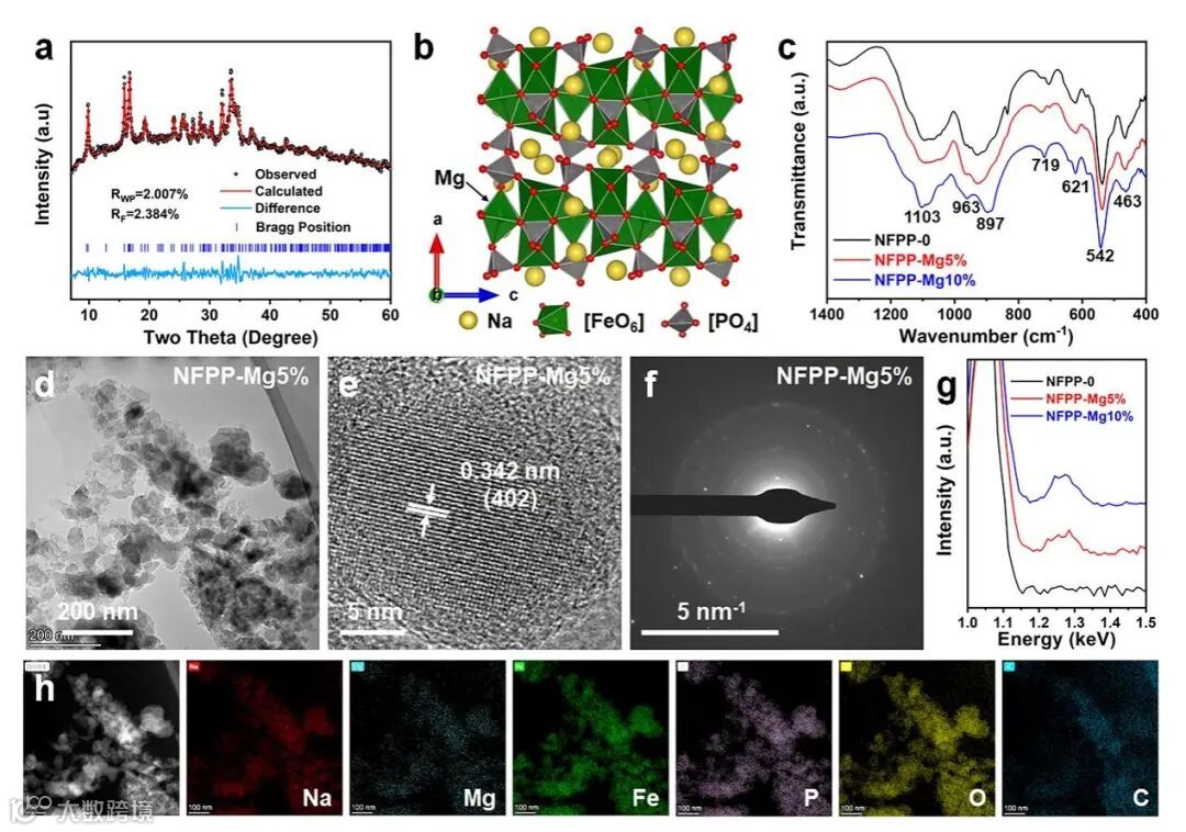图1. 镁掺杂NFPP/C复合材料的结构和成分表征