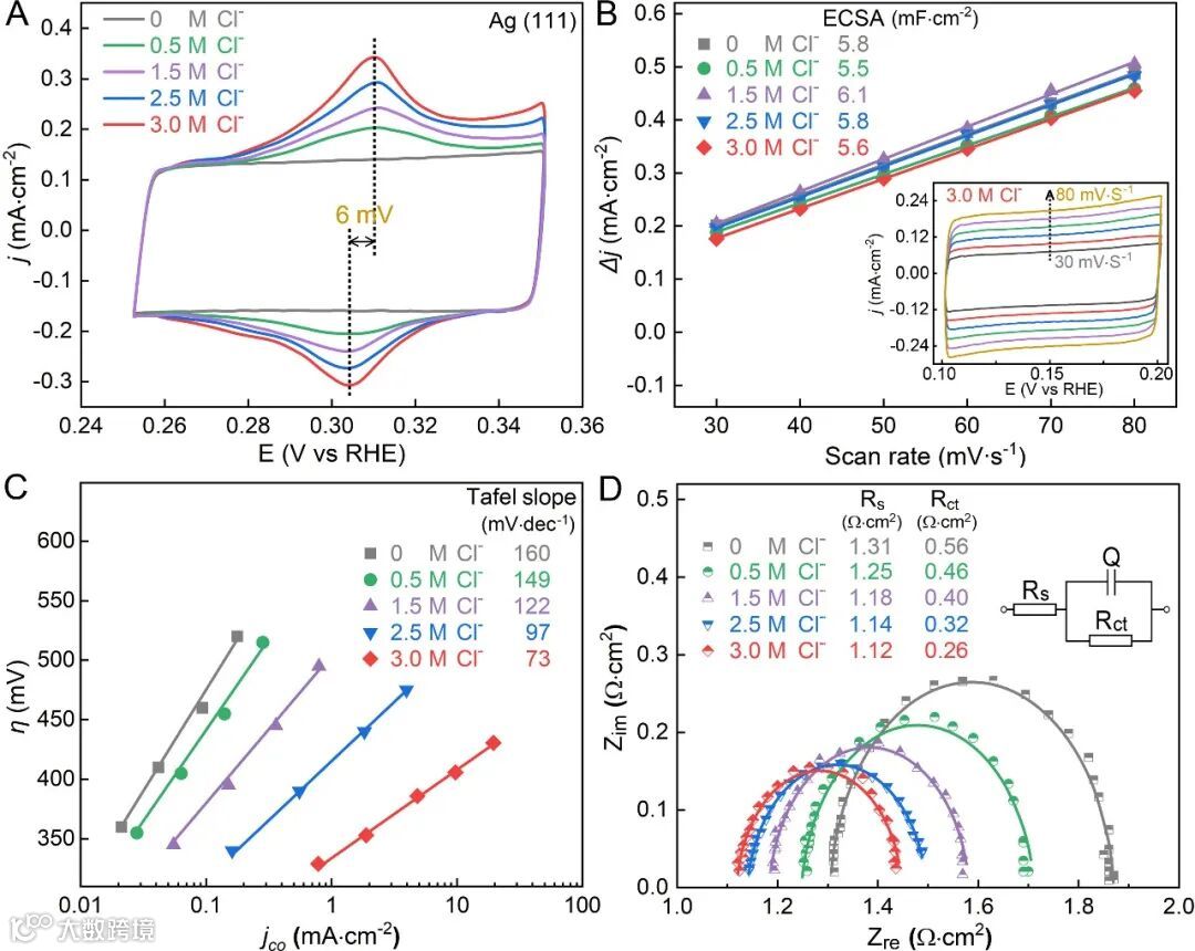图2. 低配位氯离子吸附对Ag HF电极电化学性能影响
