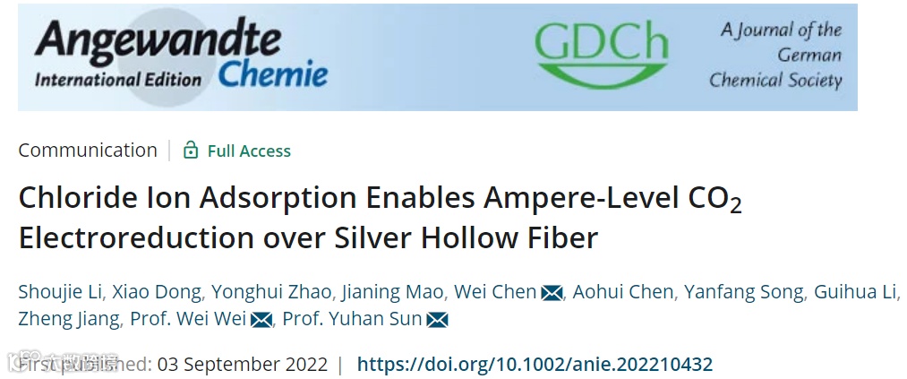综上所述,本文通过在银中空纤维电极上引入低配位氯离子特征吸附,实现了安培级电流密度下高CO法拉第效率的CO2电化学转化。该工作为发展兼顾高电流密度、高选择性、高稳定性电催化CO2系统提供了一种新策略。