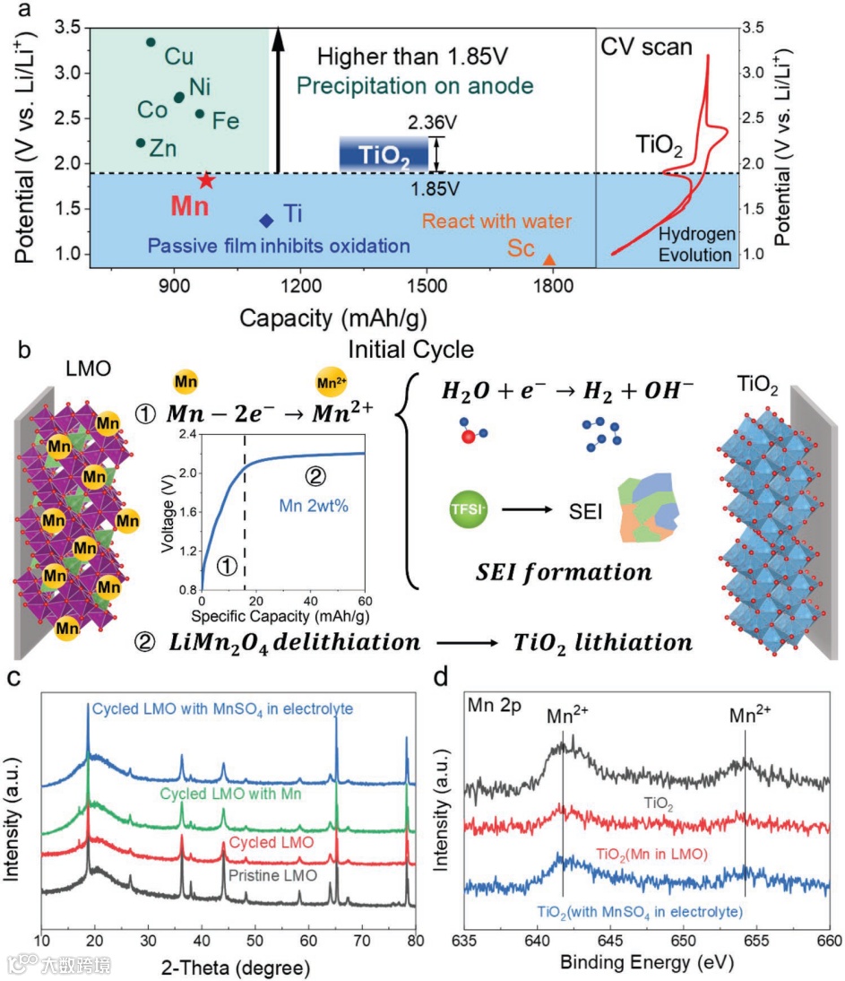 基于此,中国科学院物理研究所索鎏敏研究员课题组提出,使用过渡金属锰作为水系锂离子电池氧化补偿添加剂,来弥补首周循环过程中负极上发生的不可逆容量损失。