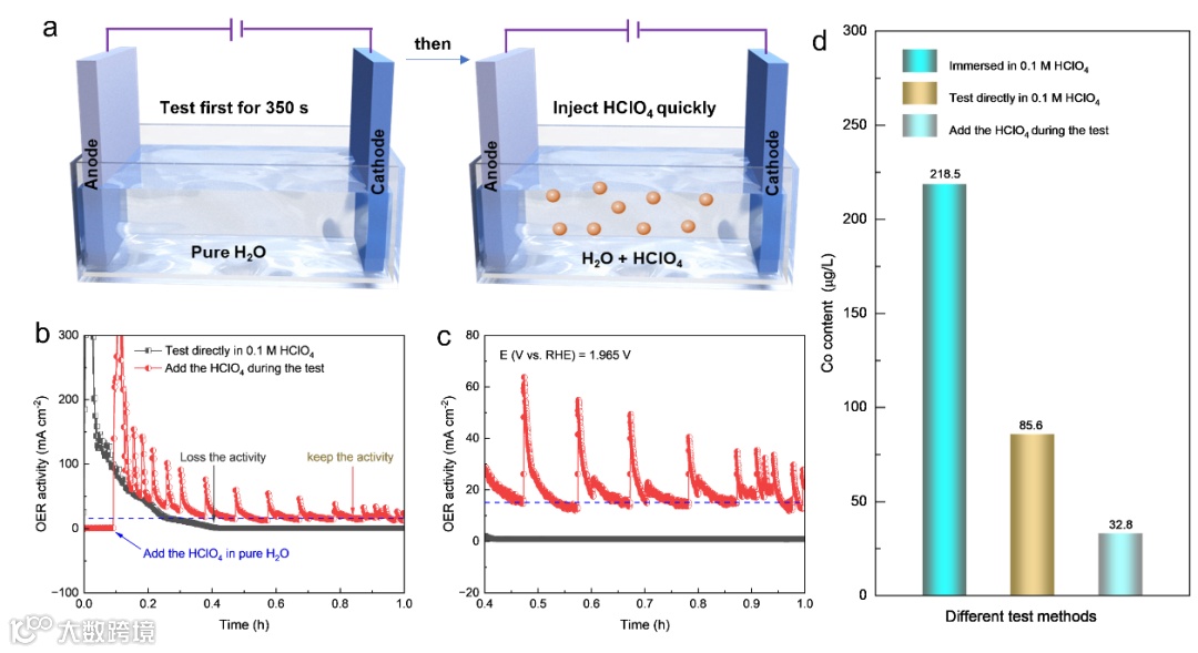 在上述发现的基础上,作者通过先向催化剂表面施加高电位再向电解液中加入酸性电解质的方式,有效提升了其他Co基催化剂的OER稳定性,进一步证明了直接电位调控有助于提升Co基催化材料酸性稳定性的可行性与普适性。