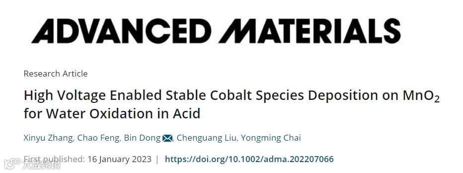 基于此,来自中国石油大学(华东)重质油国家重点实验室的董斌副教授和柴永明教授,在国际能源材料顶刊Advanced Materials上发表题为“High Voltage Enabled Stable Cobalt Species Deposition on MnO2 for Water Oxidation in Acid”的研究论文。