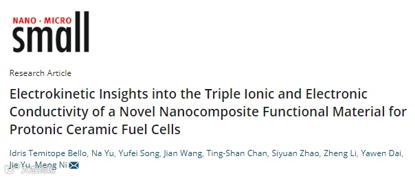 基于此,香港理工大学倪萌教授团队采用自组装技术制备一种新型具有立方-菱面体双相结构的三重离子电子电导率(TIEC)材料,用作低温质子陶瓷燃料电池(PCFC)的高效稳定氧气极。同时深入分析了电化学反应过程中的质子吸收模式以及电动力学过程。相关成果以题为“Electrokinetic Insights into the Triple Ionic and Electronic Conductivity of a Novel Nanocomposite Functional Material for Protonic Ceramic Fuel Cells”发表在国际知名杂志Small 上。