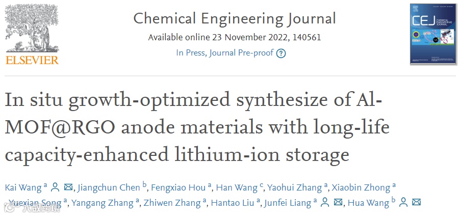 基于此,来自中北大学王凯、梁君飞团队在Chemical Engineering Journal 上发表题为“In situ growth-optimized synthesize of Al-MOF@RGO anode materials with long-life capacity-enhanced lithium-ion storage”的研究论文。该文章通过一步自组装水热法将优化的Al-MOF (Al(OH)[O2C-C6H4-CO2])颗粒原位生长在改性氧化石墨烯表面得到复合材料。