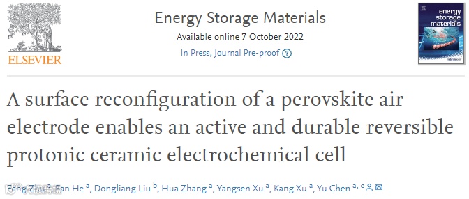 基于此,来自华南理工大学的陈宇教授团队,在国际能源领域知名期刊Energy Storage Materials上发表题为“A surface reconfiguration of a perovskite air electrode enables an active and durable reversible protonic ceramic electrochemical cell”的文章。
