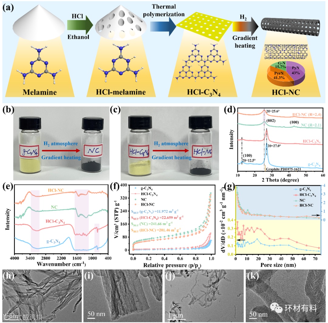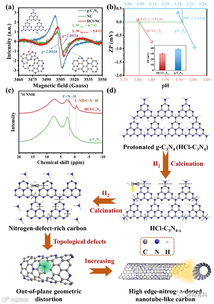 采用逆向缺陷工程策略,制备得到高边缘型氮掺杂的类管状碳材料,利用氢键作用调控前驱体来调控吡咯氮/吡啶氮比例; -