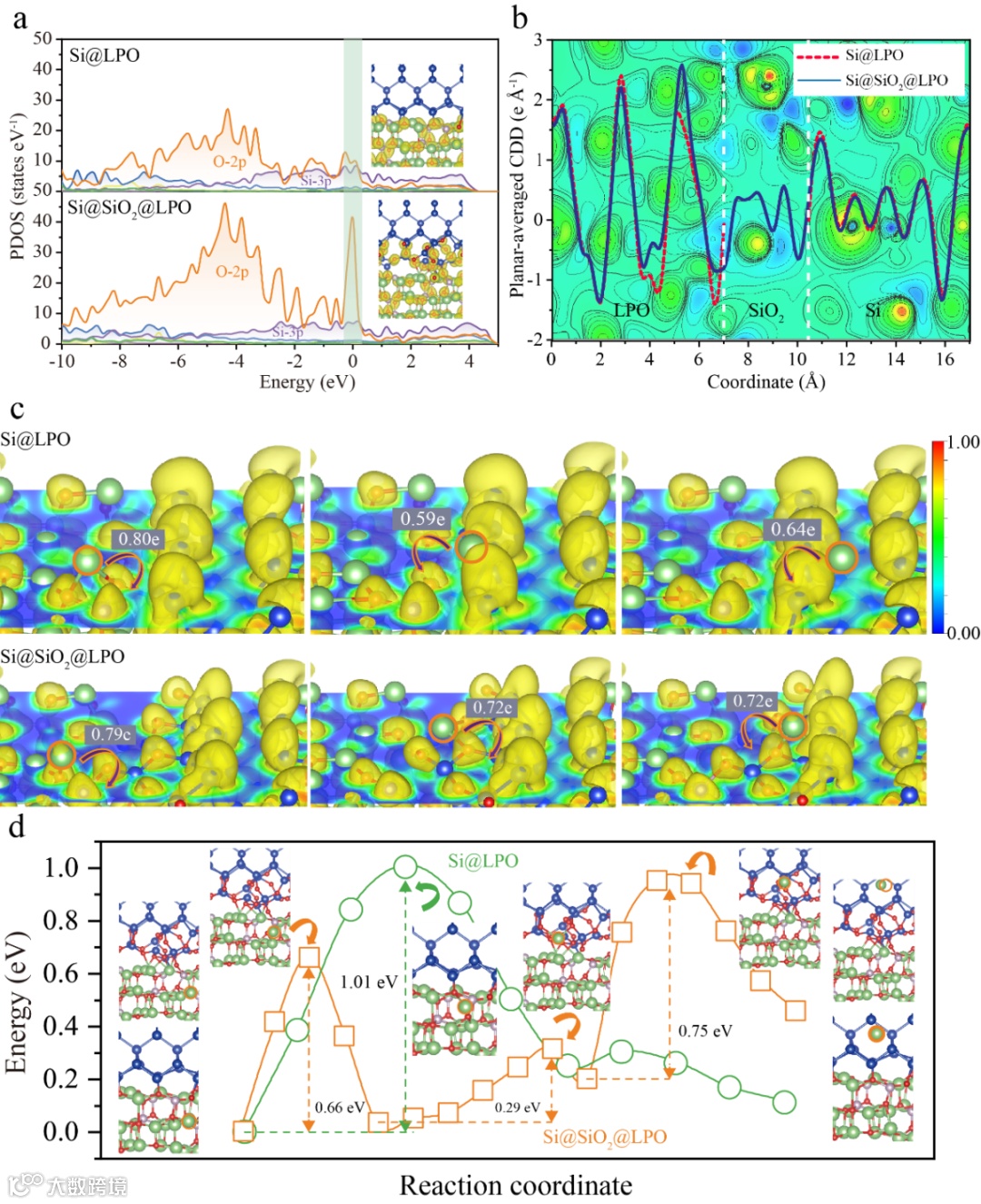 3.6 第一性原理计算 (图8)。通过第一性原理计算证实了原位生成的无定形SiO2层促进锂离子从LPO传输到Si 表面的作用。