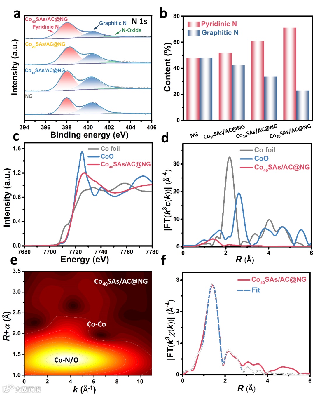 图 3. 不同Co SAs/AC@NG催化剂的XPS 和XAFS结构表征