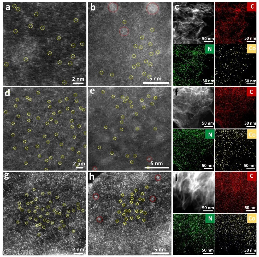 图2. 不同Co SAs/AC@NG催化剂的球差矫正HAADF-STEM表征