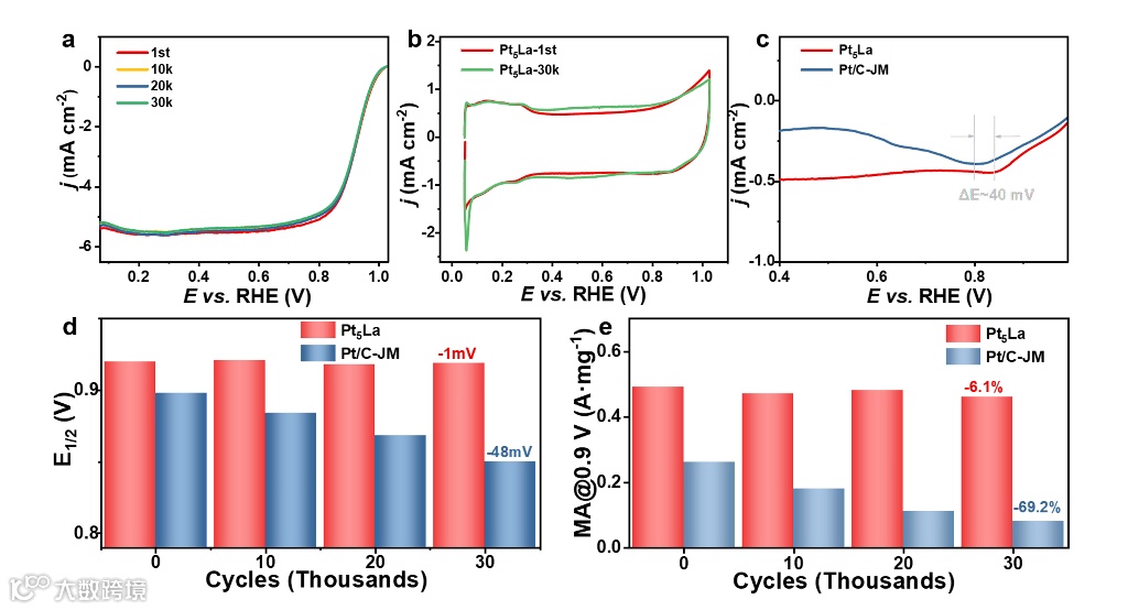 要点三:Pt5La金属间化合物优异的电化学循环稳定性