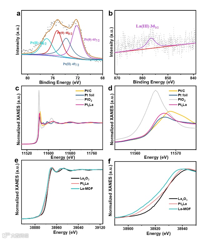 中科院长春应化所邢巍课题组通过原子分散的前驱体辅助合成方法成功地制备了用于快速ORR动力学的Pt5La金属间化合物。从三电极测试结果到MEA单电池测试结果的可迁移性,表明Pt5La金属间化合物氧还原性能可靠;对元素价态的表征表明从La到Pt的电子转移,改变了ORR过程中间物种的吸附强度;更值得关注的是,Pt5La金属间化合物在工况条件下表现出高耐久性(在30,000次循环后半波电位损失<1%,质量活性损失<7%)。