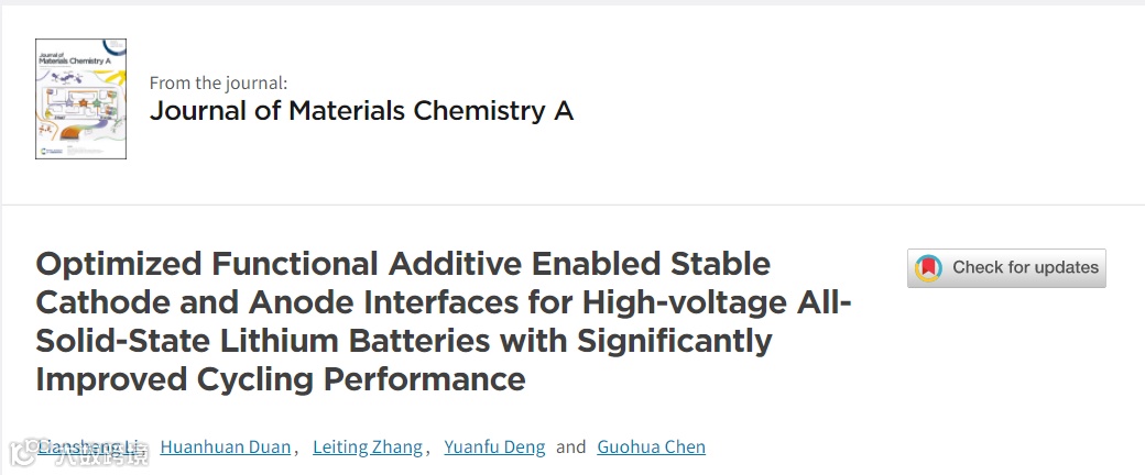 基于此,来自华南理工大学的邓远富教授,在国际知名期刊Journal of Materials Chemistry A上发表题为“Optimized Functional Additive Enabled Stable Cathode and Anode Interfaces for High-voltage All-Solid-State Lithium Batteries with Significantly Improved Cycling Performance”的研究论文。