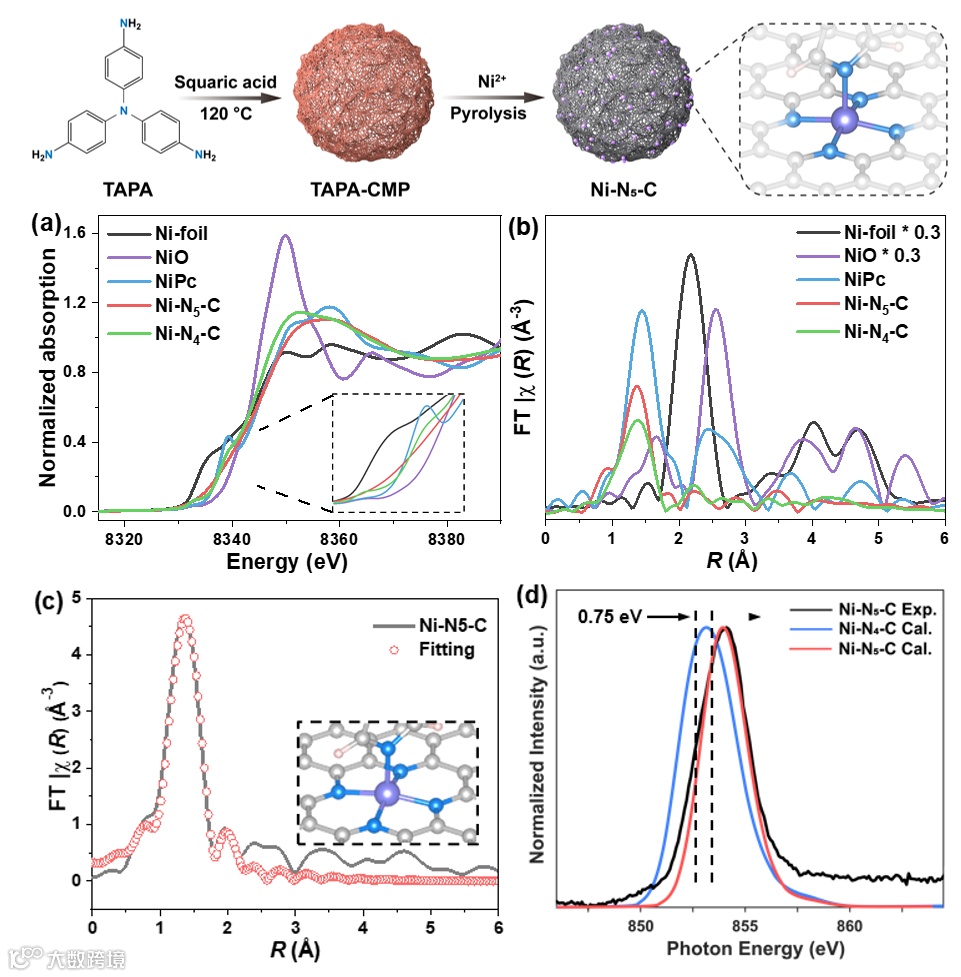 图 2 XAFS光谱证明Ni−N5−C中Ni催化位点的配位环境。图片来源:Angew. Chem. Int. Ed.