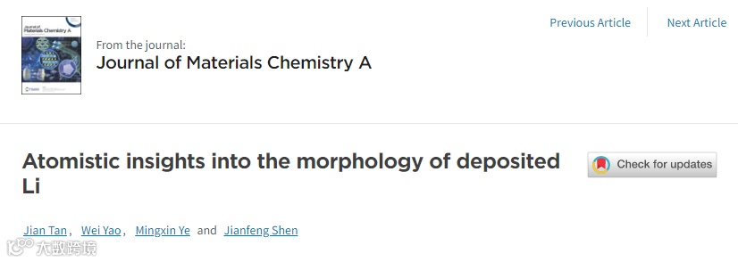 Jian Tan, Wei Yao, Mingxin Ye and Jianfeng Shen. Atomistic insights into the morphology of deposited Li.