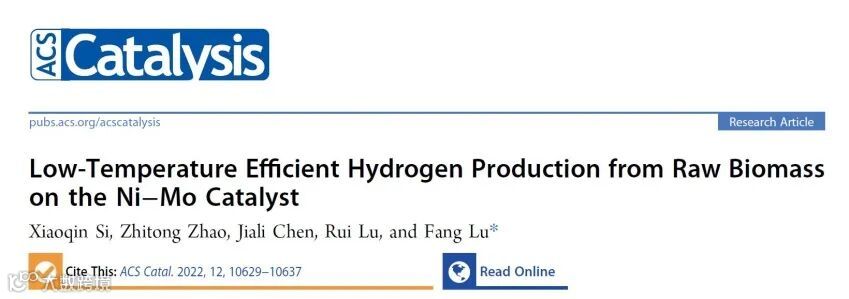 基于此,来自中国科学院大连化学物理研究所的路芳研究团队,在国际知名期刊ACS Catalysis上发表题为“Low-Temperature Efficient Hydrogen Production from Raw Biomass on the Ni-Mo Catalyst”的文章。该文章报道了一种高效的催化策略,使用Ni-Mo催化剂可催化多种农林废弃物在相对低温的条件下直接转化制备氢气。