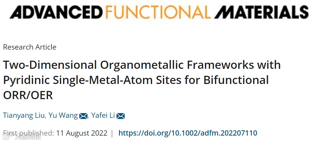 具有吡啶单金属原子位点的二维有机金属ORR/OER双功能催化剂