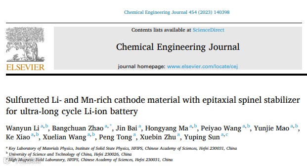 基于此,来自中国科学院合肥物质科学研究院的赵邦传研究员等人,在国际知名期刊Chemical Engineering Journal上发表题为“Sulfuretted Li- and Mn-rich cathode material with epitaxial spinel stabilizer for ultra-long cycle Li-ion battery”的研究论文。
