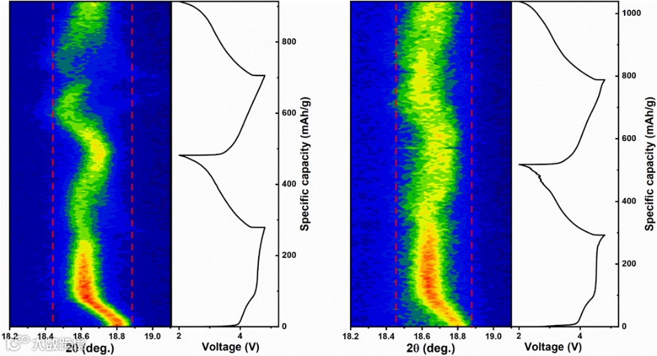 图5. LMR和LMRS@S前两圈的原位XRD等高图。