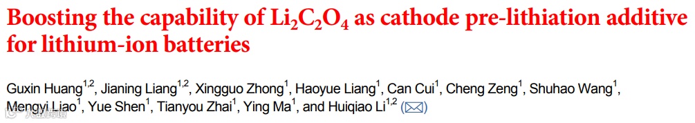 在这些有机小分子锂盐中,草酸锂(Li2C2O4)具有525 mA h g-1的高理论容量和良好的空气稳定性,被认为是一种极具吸引力的正极预锂化添加剂。然而,其实际容量远低于理论值,并且其有较高的脱锂电位(>4.7 V),无法与大多数商用正极材料相匹配,这极大地阻碍了其商业应用。