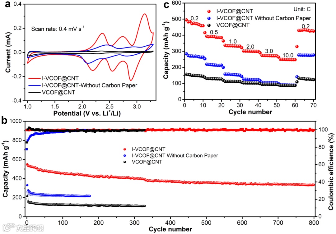 图3. I-VCOF@CNT电极的储锂性能表征