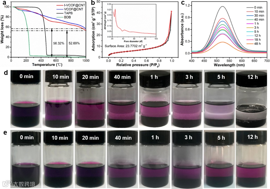 图2. I-VCOF@CNT对I2的吸附性能表征