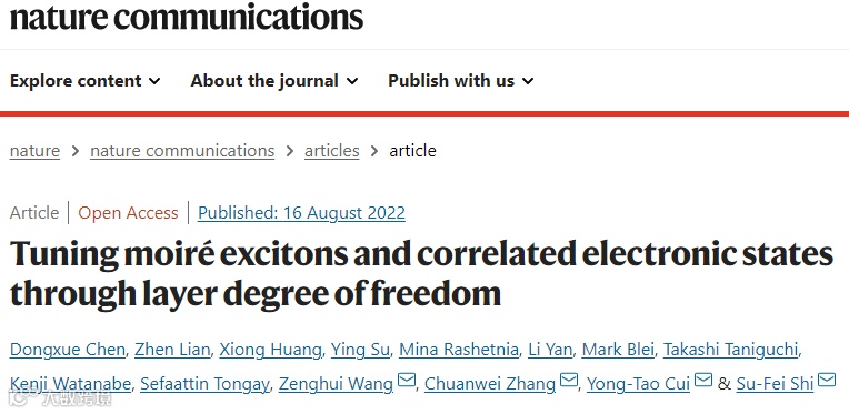 基于此,电子科技大学的王曾晖,德克萨斯大学达拉斯分校(University of Texas at Dallas)的张传伟,加州大学河滨分校(Univ of California Riverside)的崔永涛,以及伦斯勒理工(Rensselaer Polytechnic Institute)的史夙飞研究组联合报道了WS2/WSe2二维半导体莫尔超晶格异质结的层数依赖性,论文发表于《Nature Communications》。
