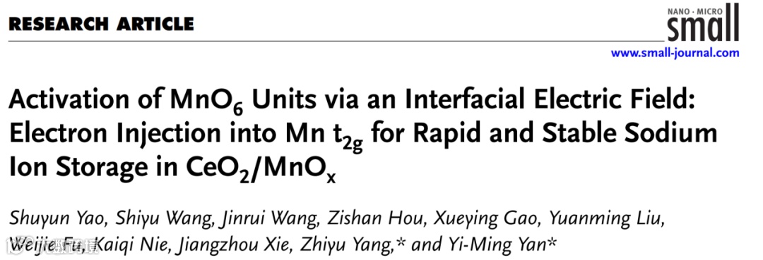界面电场活化MnO6单元: 电子注入Mn t2g轨道在CeO2/MnOx中实现快速稳定存储钠离子