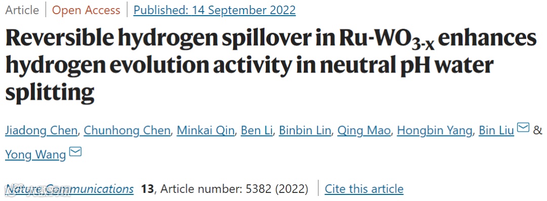 反向氢溢流提升Ru-WO3-x催化剂在中性pH环境中的HER性能