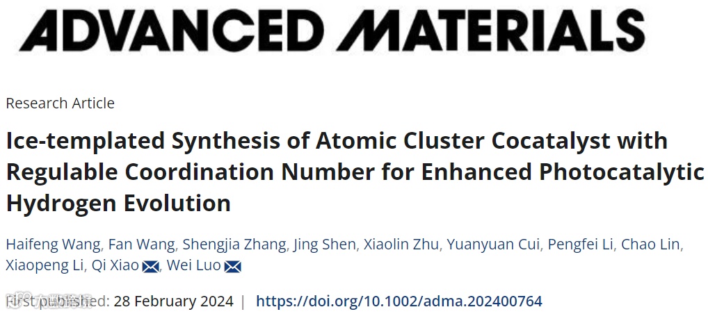 冰模板法合成配位数可调的原子团簇助催化剂增强光催化析氢