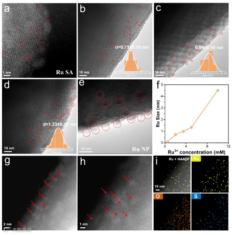 图2. 冰模板法制备的不同尺寸的Ru助催化剂。